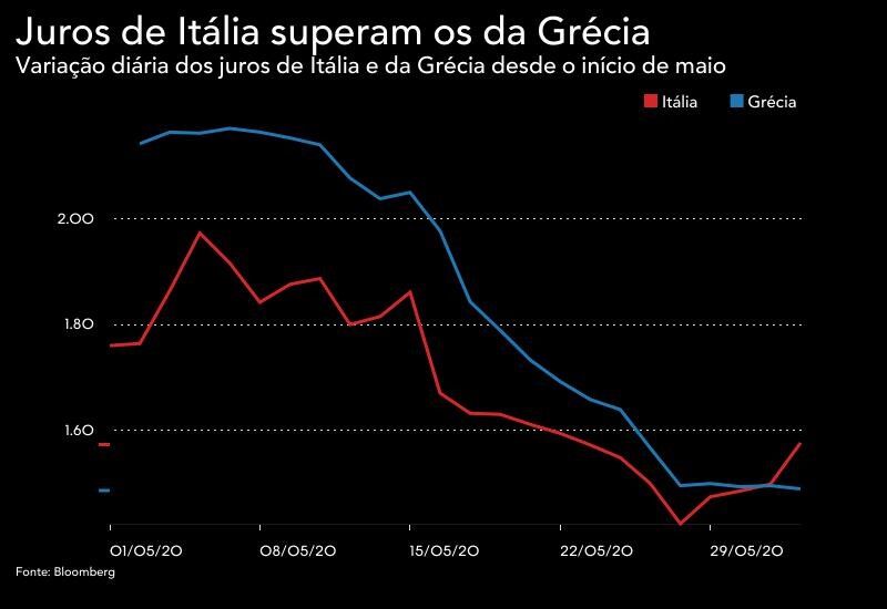 No mês passado, a taxa de referência da Grécia afundou 64 pontos base, o que lhe permitiu uma aproximação aos juros de Itália com a mesma maturidade, que sofreu uma redução de 12 pontos base no mesmo período. Este novo valor dos juros helénicos representa um mínimo desde o final de fevereiro deste ano, altura em que a pandemia começou a fazer moça nos mercados de dívida.