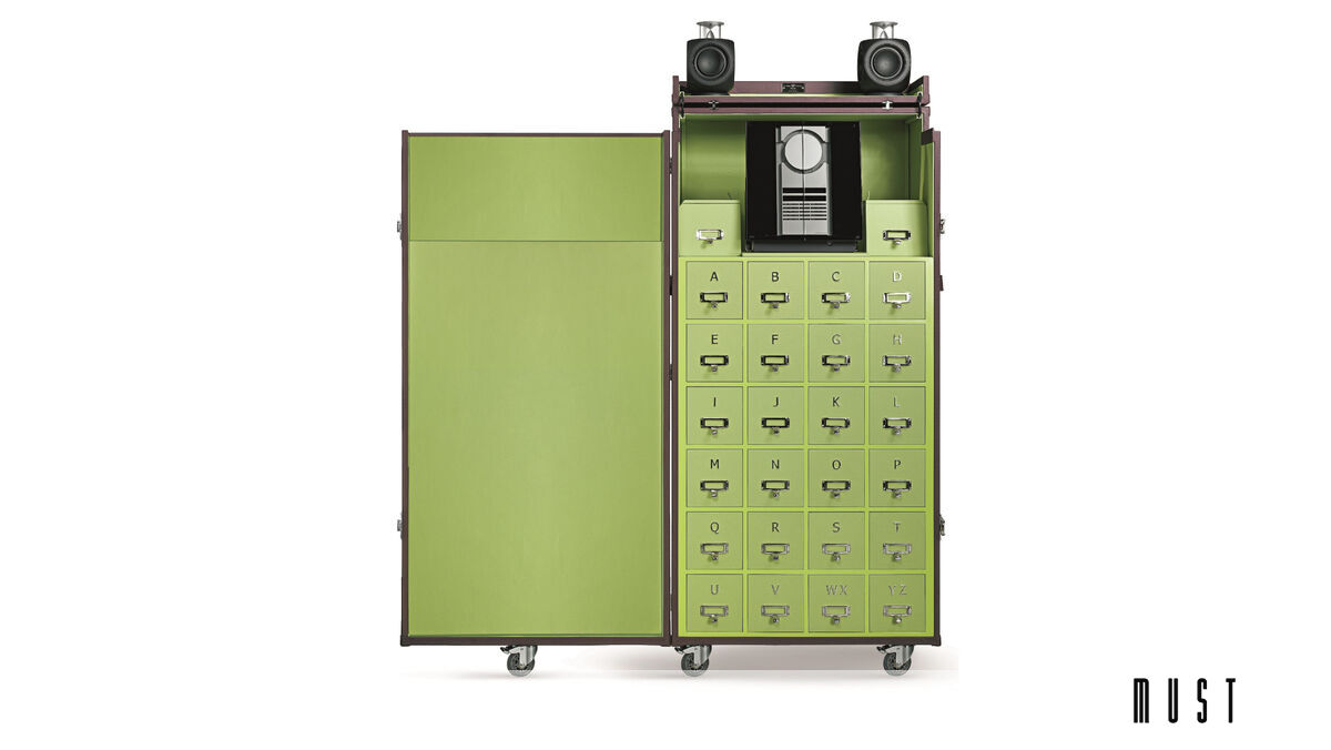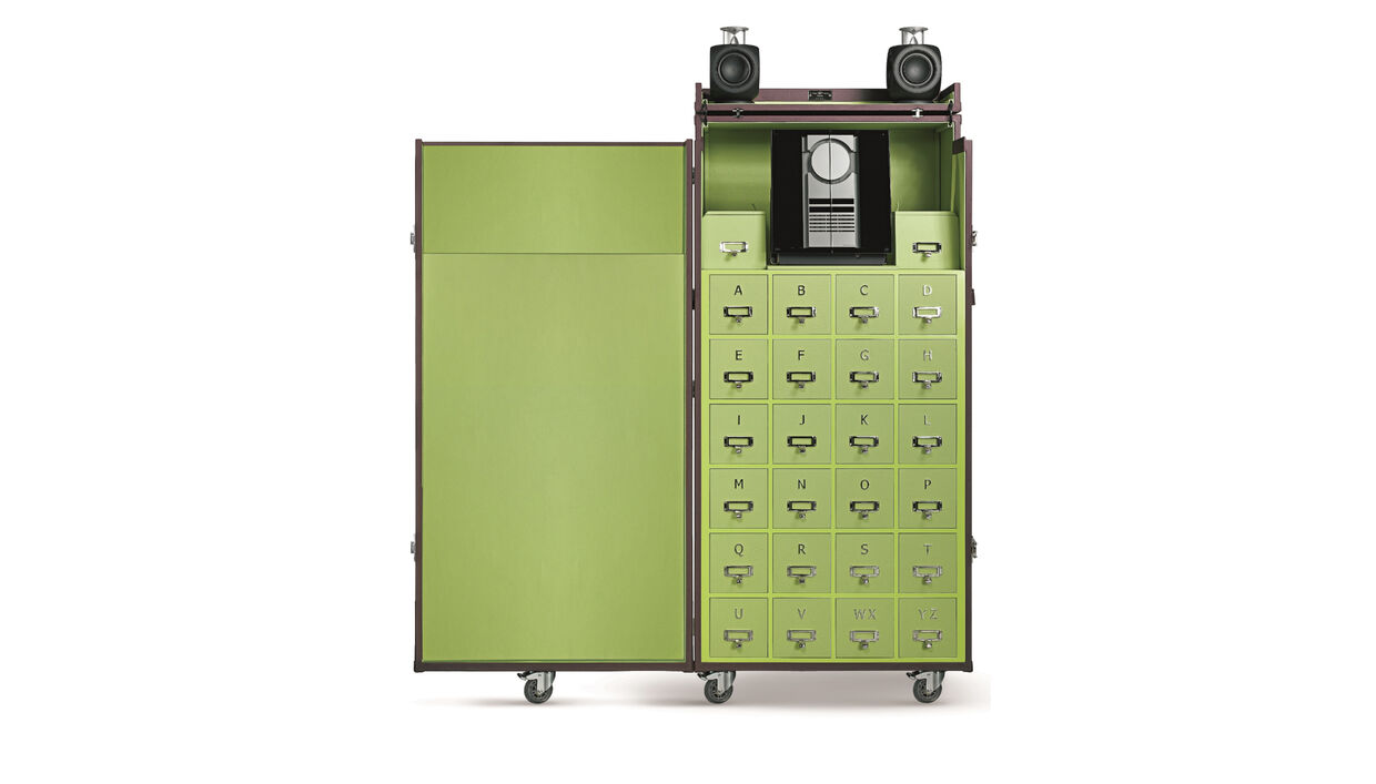 Com 61,2 cm de altura, por 28,3 cm de largura e 20,5 cm de profundidade (quando fechado), é fabricado manualmente e tem uma estrutura em madeira forrada a couro e a pele de bezerro (no interior). Comporta cerca de 480 cd distribuídos por ordem alfabética por 24 gavetas. Integra o Beasound 3000CD/Radio e dois altifalantes (250 watts) da Beolab3, tudo da Bang & Olufsen. Está disponível em 51 cores e é fabricado por encomenda. pineletpinel.com