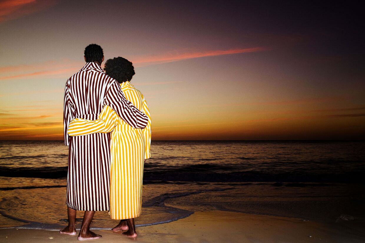 "Esta coleção pretende captar aquela sensação mágica de estar de férias em casa: pode ser num momento relaxante e bonito na sua casa de banho, sentindo-se bem no seu roupão, ou a receber convidados e a criar memórias à volta de uma mesa com copos especiais. Além disso, embora Palm Heights seja um espaço altamente visual e chique, tem também um carácter lúdico, e a mistura destes dois mundos seria o meu ideal para as pessoas tirarem partido da coleção", explica Gabriella Khalil, Diretora Criativa do hotel Palm Heights.