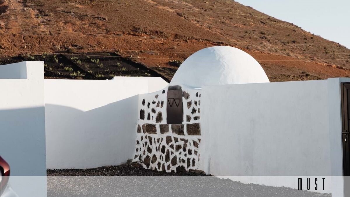 Os interiores são minimalistas e os materiais foram criteriosamente escolhidos para não destoarem da paisagem: incluem pedra bruta, betão fresco e detalhes artesanais. Tudo o que aqui está pertence aqui, resultando num design funcional, refinado e perfeitamente enquadrado. Visto de longe, o edifício assemelha-se a uma antiga finca tradicional (casa rural), mas à medida que se avança pelo caminho de cinza vulcânica, o espaço transforma-se num refúgio boho-chic.