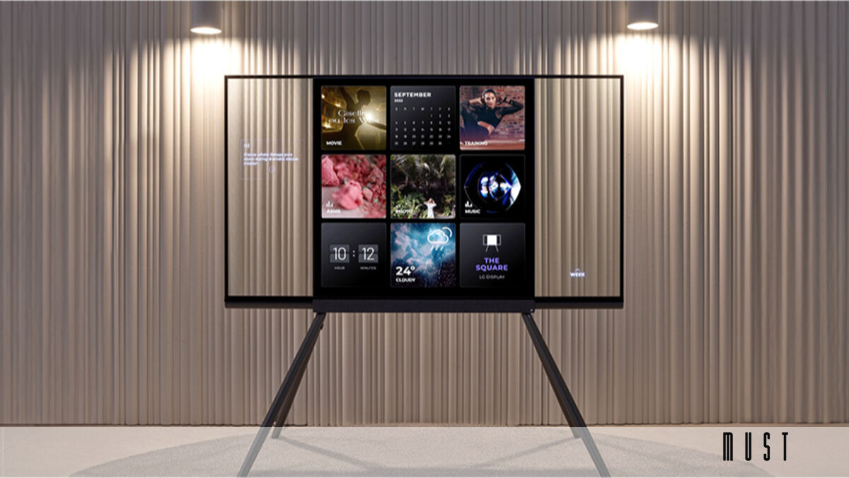 É a primeira Smart TV 4K transparente - sem fios de vídeo e de áudio - do mundo. Lançada pela LG, a televisão com um ecrã transparente, neste caso com 77 polegadas (196 cm), representa uma nova perspetiva na qual as imagens parecem flutuar no ar. Os responsáveis da empresa consideram que os consumidores de hoje procuram novas formas de decorar os seus espaços sem ter um ecrã preto “monstruoso” a dominar a sala. Para os momentos de pausa, o protetor de ecrã OLED permite escolher entre uma variedade de opções, como fotos, arte ou simplesmente um vidro translúcido. A marca refere que o elevado nível de transparência do ecrã OLED dissipa as barreiras entre o ecrã e o espaço que o circunda num ambiente tridimensional. Um botão coloca-lhe rapidamente um fundo negro. Vêm equipadas com Dolby Vision para cores, contraste e brilho, além de Dolby Atmos 4 para um som envolvente. €51.580
